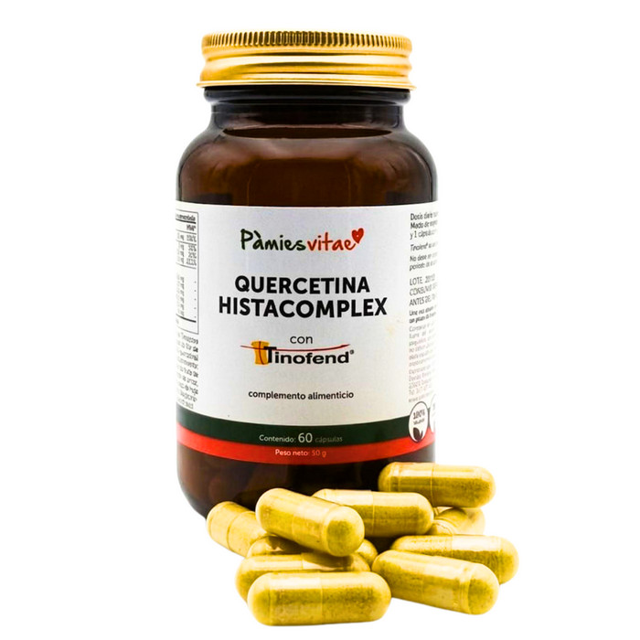Esta fórmula combina quercetina de alta pureza, la patente Tinofend® (Tinospora cordifolia) y extracto de alcaparra estandarizado, junto con vitamina C y cofactores esenciales de la enzima DAO (zinc, cobre y manganeso), para ayudar a modular la respuesta frente a la histamina.
